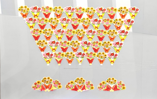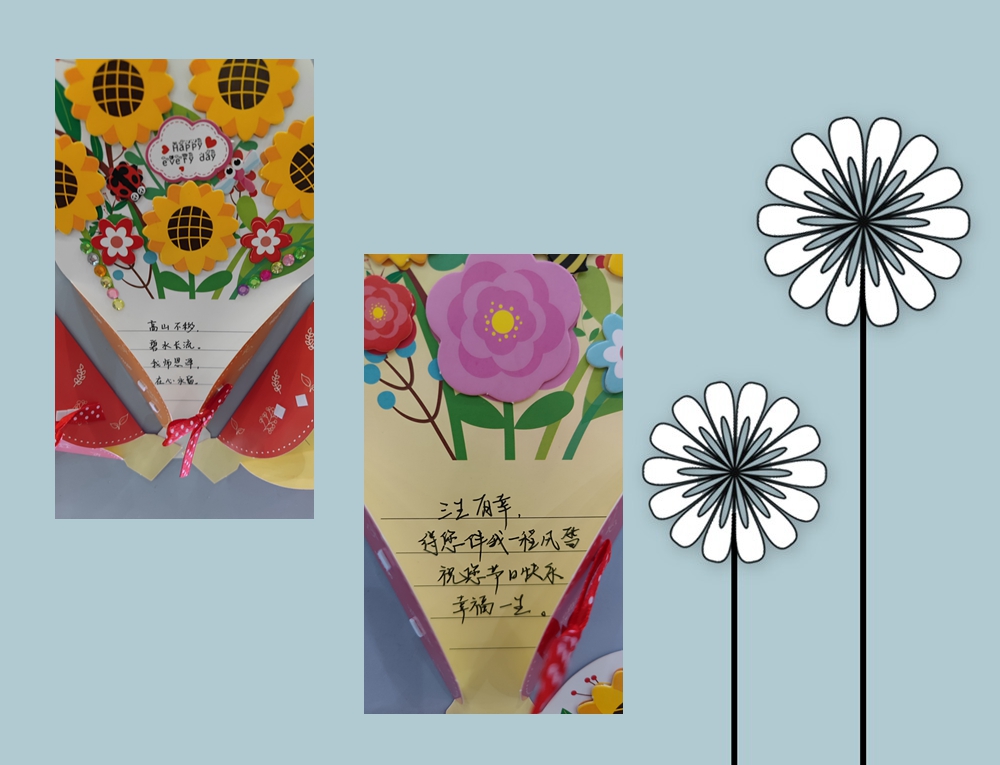 周五一早,物理学院一楼大屏幕上就出现了物理学院教师节的祝福语。与此同时,在大屏幕旁出现了一丛美丽的“鲜花”,这是由物理学院的学生们为教师亲手制作的一张张鲜花贺卡,每一张卡片上都饱含学生们幸福而又充满爱祝福,以及对各位老师兢兢业业、积爱砌堆、无私奉献的感谢!每位教师都可以去“采摘”一朵最美的“鲜花”,收获一份属于自己的美好祝福,将学生们对教师的衷心感谢与美好祝愿带回家。