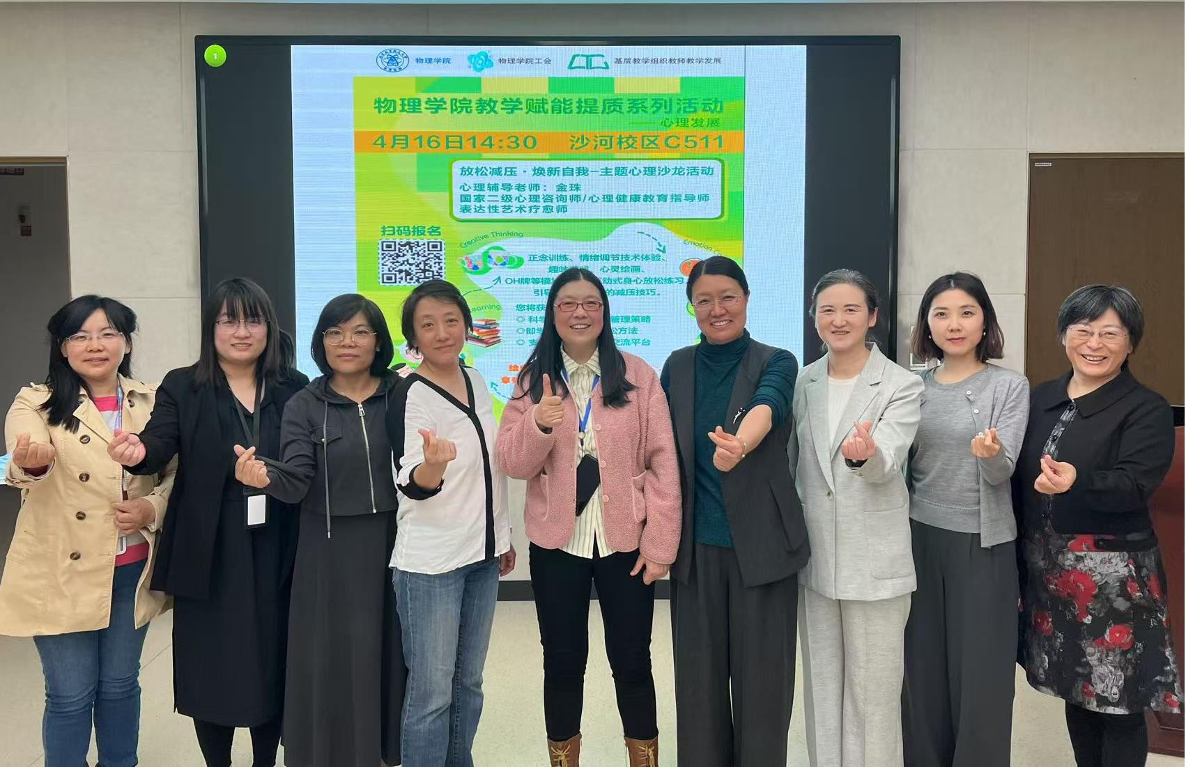 “教师群体长期面临教学科研双重负荷,需要建立可持续的心理保健机制。”活动负责人表示,沙龙特别设计了"零门槛"参与形式,无需心理学背景,通过轻松互动即可获得身心疗愈。参加活动的老师表示十分享受在专业引导下开启的自我关照的疗愈时光,有效地帮助大家能够以焕然一新的状态继续育人事业。物理学院此次创新性将团体心理技术引入教师关怀体系,系校内院系级单位首创。学院近期开展多个模块的赋能活动,包括教学发展、心理发展、数智赋能等,旨在全面提升教师专业素养与综合能力。